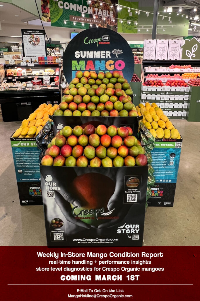 On March 1, Crespo Organic will launch a new weekly in-store conditions report, available exclusively to Crespo Organic mango customers through the exclusive weekly distribution list or directly via the Crespo Organic sales team. Rooted in Crespo’s signature Mango-Ed approach—teaching, sharing, and learning together within the direct-trade systems their program is built on—the report reflects the partnerships in which the Crespo program thrives.